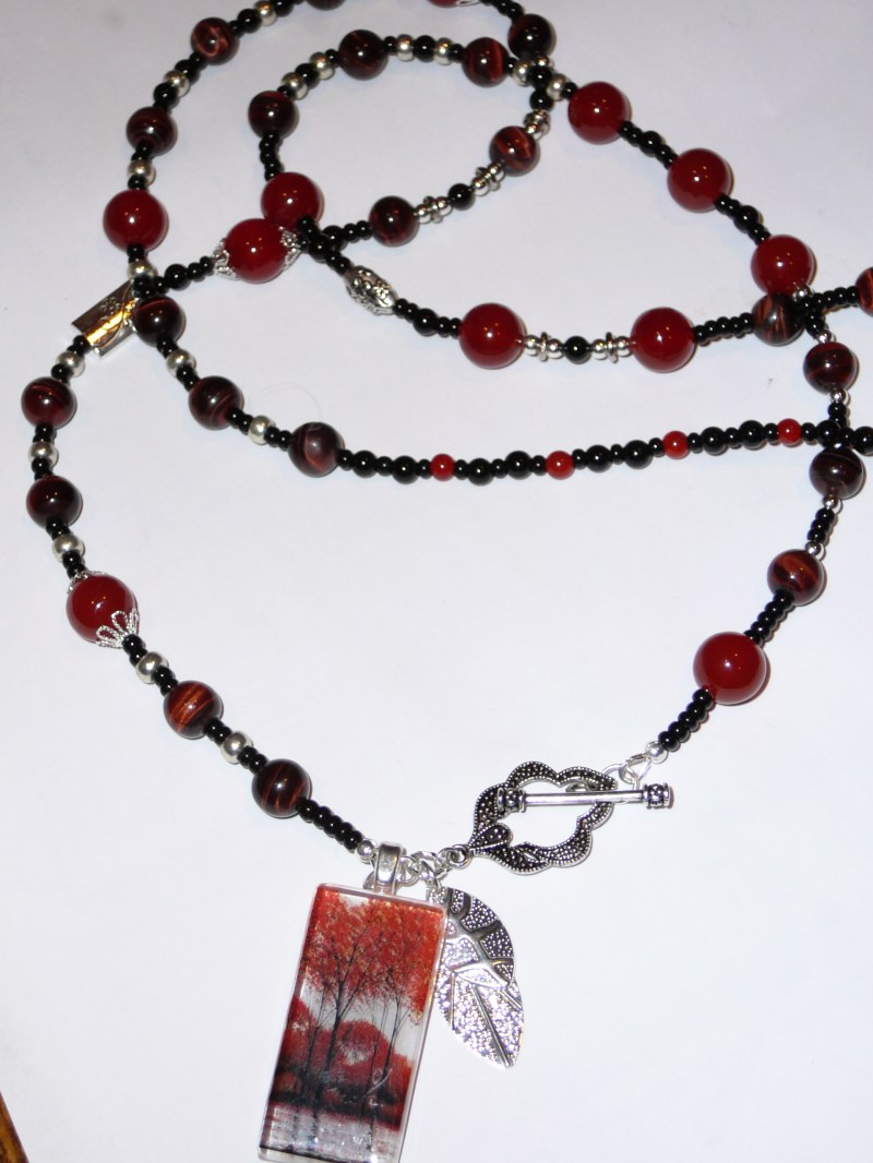 Photo glass pendant enhanced by a strand of carnelian, red tiger eye and a beautiful clasp