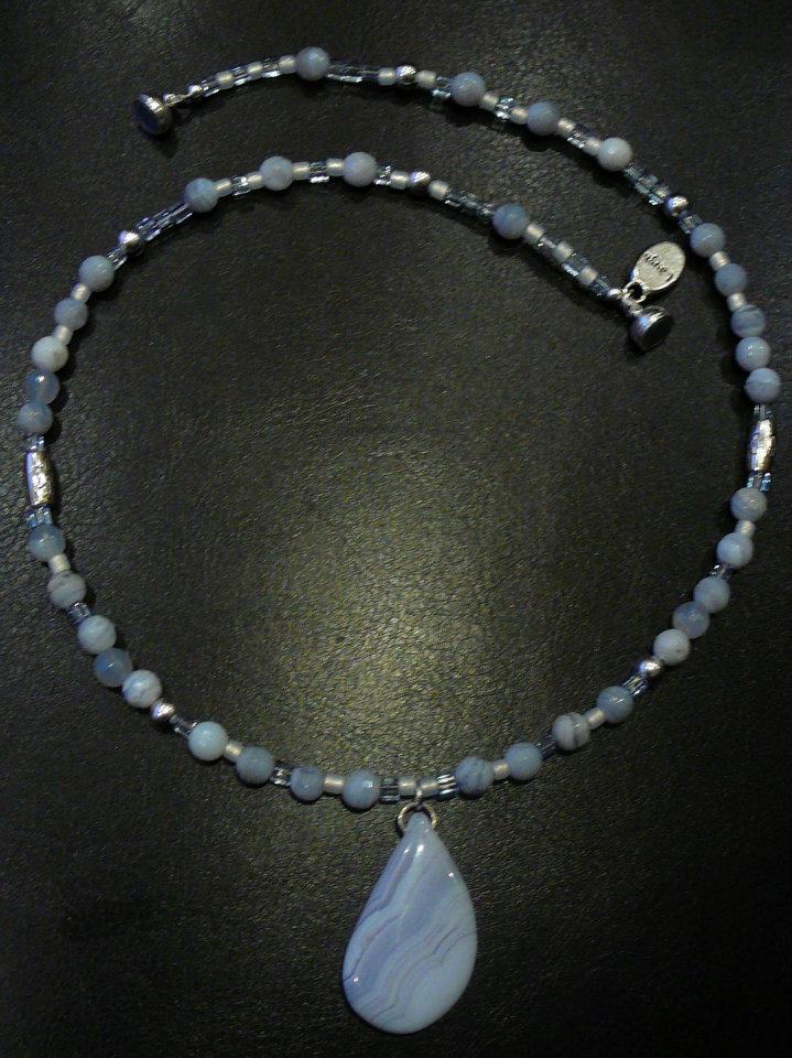 Blue lace agate – such a delicate name. And a gorgeous delicate blue colour blended with milky white. The beads are also blue lace agate, but are gently faceted. A…