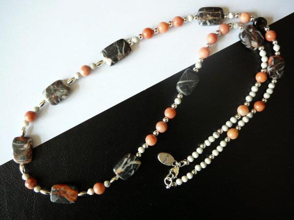 Black coral, white jasper, coral jasper, black jasper, and white howlite.